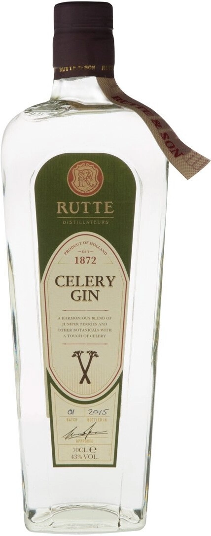 Джин Celery из линейки Rutte производится в Нидерландах компанией De Kuyper Royal Distillers и сохраняет семейные традиции рецептуры Rutte с акцентом на сельдерей как ключевой растительный компонент. В основе производства используются свежие растения и травы, при этом производитель подчёркивает отказ от искусственных ароматизаторов и красителей; исторический бренд Rutte объединён с опытом De Kuyper, что позволило возродить ассортимент и вывести на международные конкурсы отмеченные позиции. В аромате джина заметны тонкие цветочные ноты вместе с можжевельником, кориандром и кардамоном, а вкус характеризуется свежестью, хрустящей травянистостью мяты, петрушки и сельдерея с нюансами аниса и чистым, слегка солоноватым послевкусием. Напиток ориентирован на употребление в чистом виде со льдом, а также в сочетании с тоником и в коктейлях, где его травяные оттенки играют ведущую роль. Этот джин привлекал внимание специалистов и был отмечен на международных мероприятиях, что подчёркивает его профиль как яркого специализированного растительного джина.