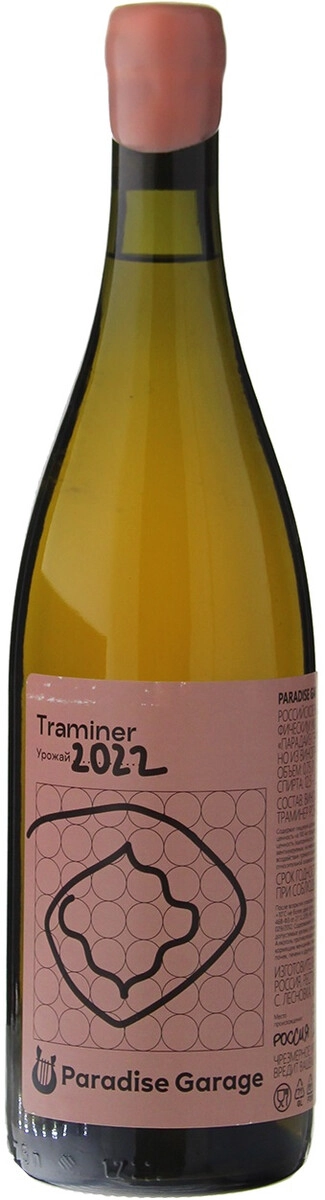 Вино Траминер, Парадайз Гараж, 2022, 0.75 л
